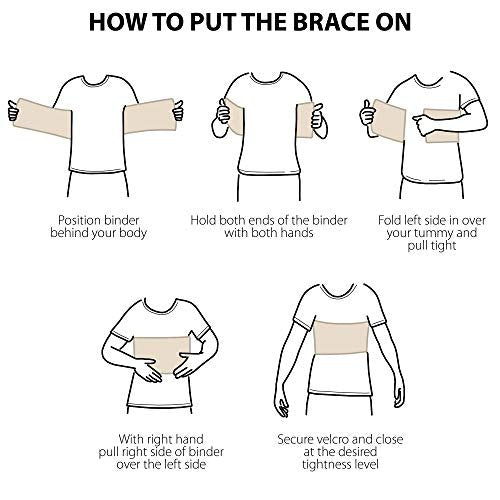 Apply gentle, supportive compression that stabilizes the rib cage without restricting breathing. You should be able to take deep breaths and slide two fingers under the belt. If you feel shortness of breath, numbness, or increased pain, loosen or remove the brace and consult your clinician.